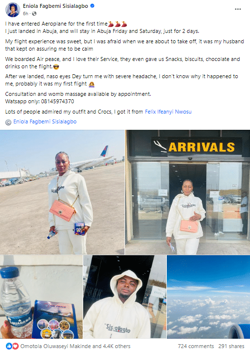 Eniola Fagbemi, a 25-year-old herbs seller from Oyo, took to Facebook to share her excitement about flying on a plane for the first time at the age of 25.