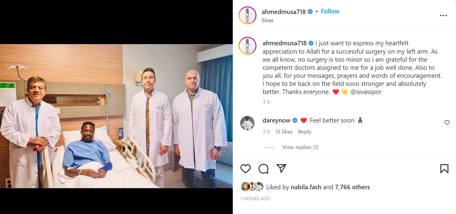 Super Eagles captain, Ahmed Musa has expressed gratitude after undergoing successful surgery on his left arm.