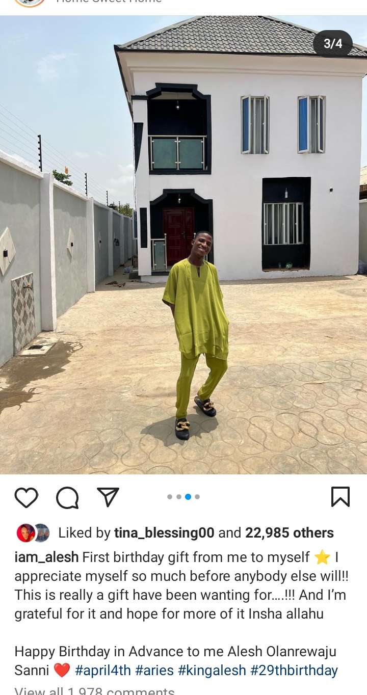 Alesh Sanni becomes latest landlord as he acquires new house as early birthday gift (Photo)