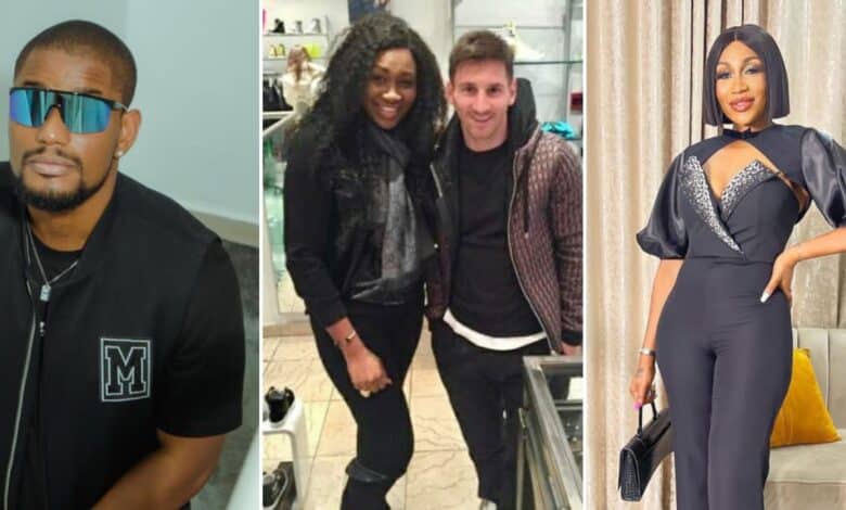 Veteran Nollywood Actor, Alexx Ekubo, has received a heavy backlash following his comment on colleague, Ebube Nwagbo’s throwback photo with Argentina football player, Lionel Messi.