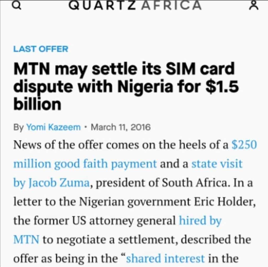 He cited a past occurrence where Nigeria sanctioned MTN and it resulted in a Presidential visit from the president.
