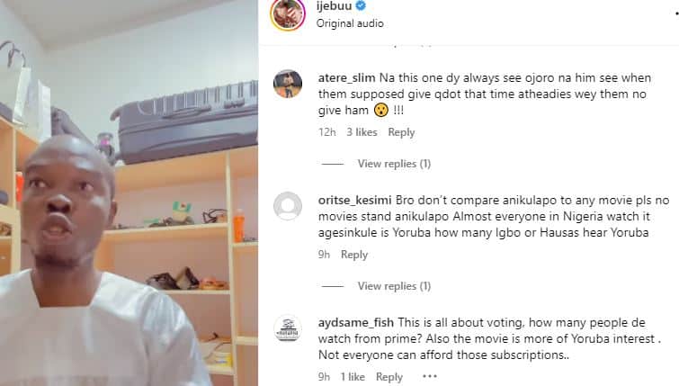 “Bro don’t compare Anikulapo to any movie pls no movies stand Anikulapo almost everyone in Nigeria watch it Agesinkule is Yoruba how many Igbo or Hausas hear Yoruba”