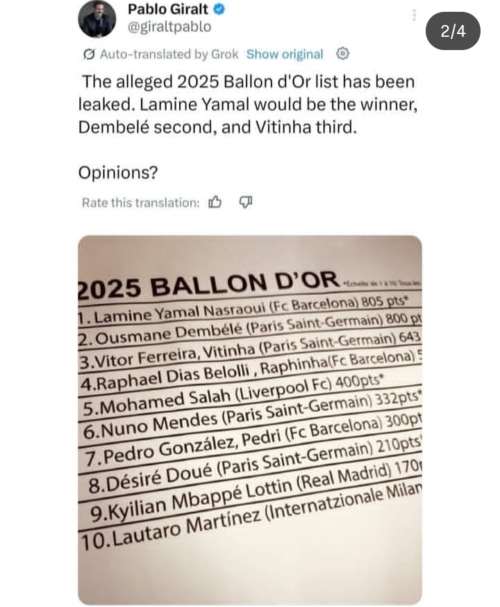 Reactions Trailng Alleged 2025 Balon d’Or results
