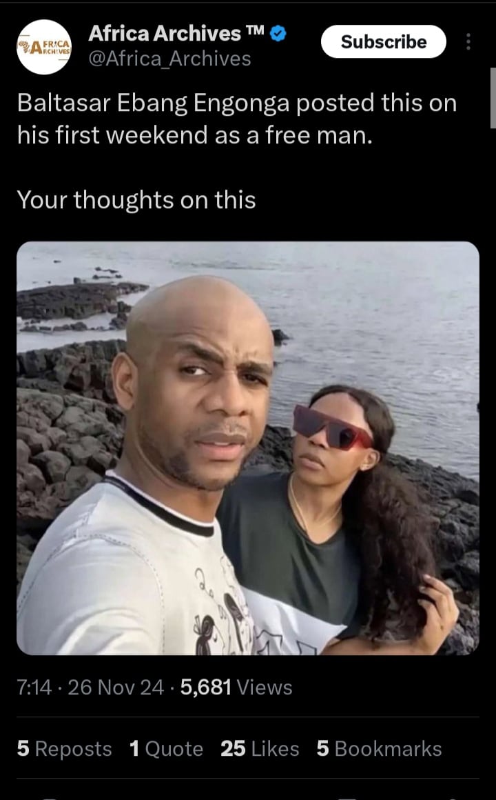 “Baltasar Ebang Engonga posted this on his first weekend as a free man.