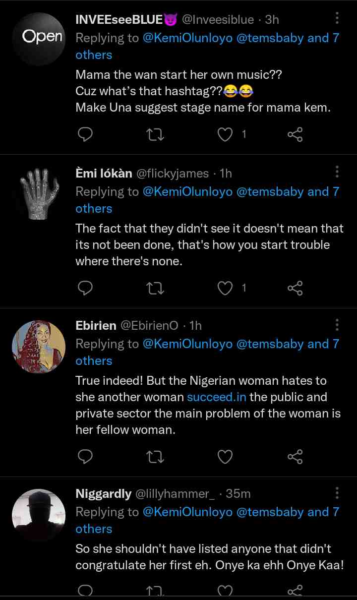 Reacting, Kemi Olunloyo took to the comment section to assert that those female stars should have congratulated her first.