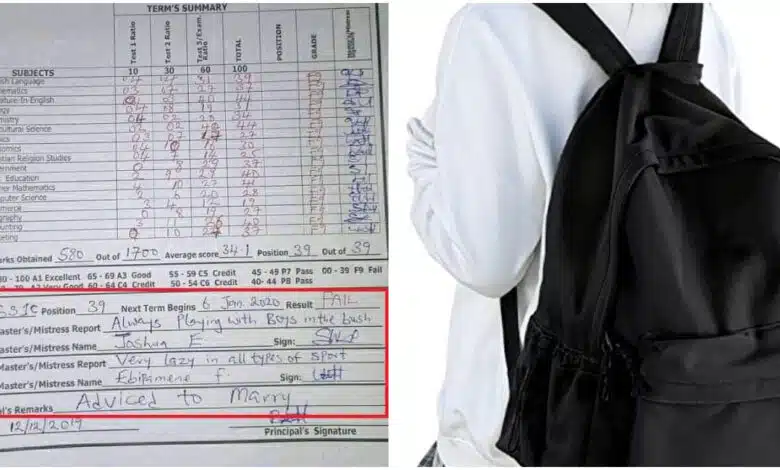 “Always playing with boys in the bush, advised to marry” – Mother shares daughter’s result slip and remarks from teacher
