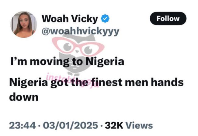 Her post read, “I’m moving to Nigeria, Nigeria got he finest hands down.”