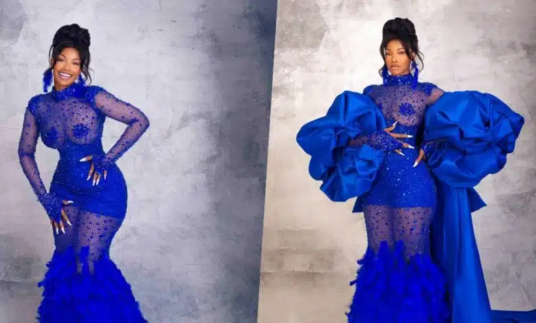 Big Brother Naija star, Tacha served the “lady in blue” look at the 2023 African Magic Viewers Choice Awards (AMVCA) which is currently ongoing.