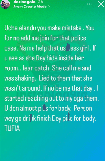 Doris Ogala claimed that Angela Okorie has been the one giving information about their colleagues to bloggers so they can drag them.