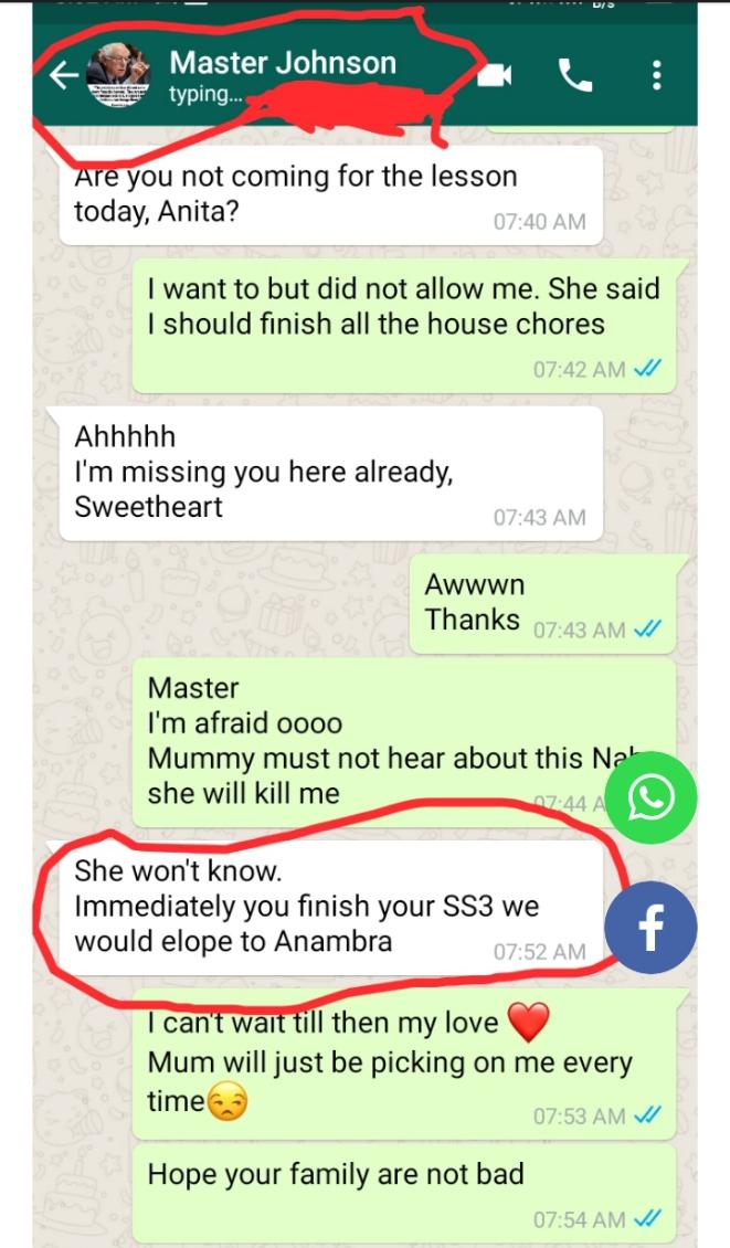 An angry mother has shared her daughter’s chat with male teacher who planned to elope with her daughter after secondary school.