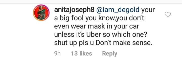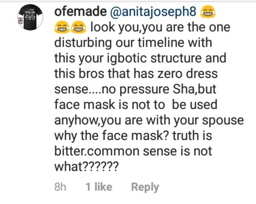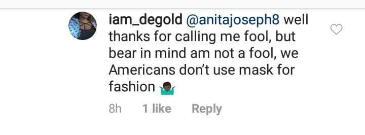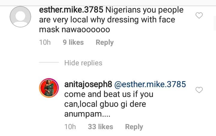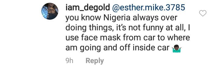“Nigerians you people are very local. Why dressing with face mask,” one follower commented on the photo.