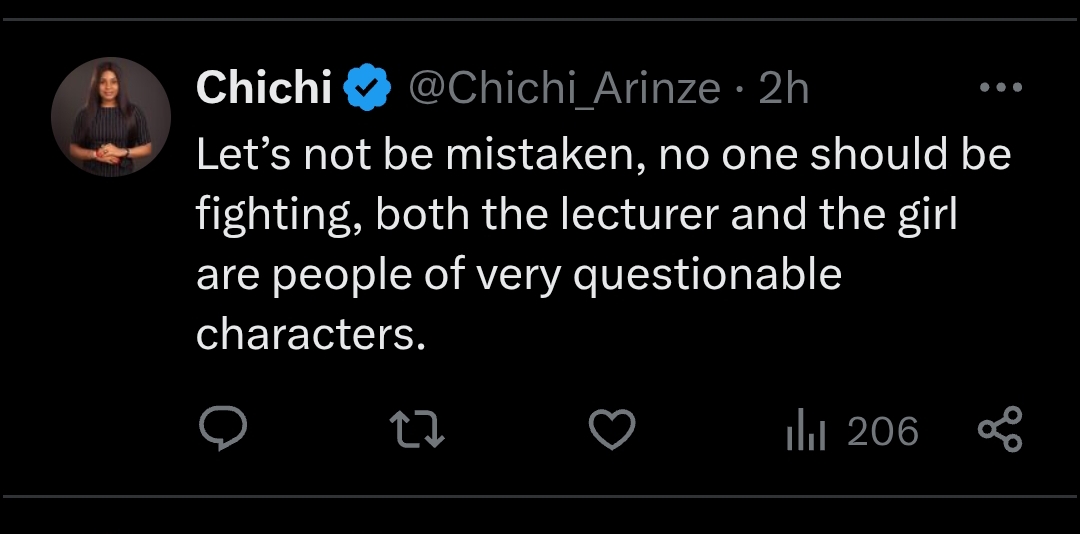 In a post shared on her X (formerly Twitter) page, she insisted that the yet-to-be-released footage clearly shows the lecturer pulling the student’s top around her breast area.