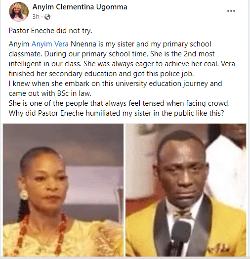 Why did Pastor Eneche humiliated my sister in the public like this?”