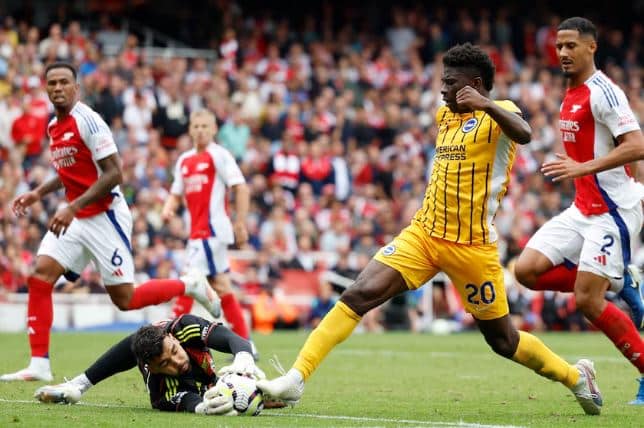 Arsenal took the lead in the first half when Kai Havertz, continuing his impressive start to the season, lobbed Brighton goalkeeper Bart Verbruggen.