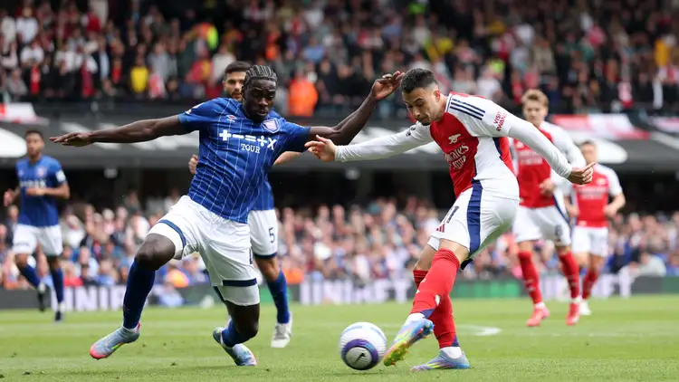 Arsenal delivered a dominant performance at Portman Road, thrashing 10-man Ipswich Town 4-0 to tighten their grip on a top-four finish and momentarily stall Liverpool’s Premier League title charge.