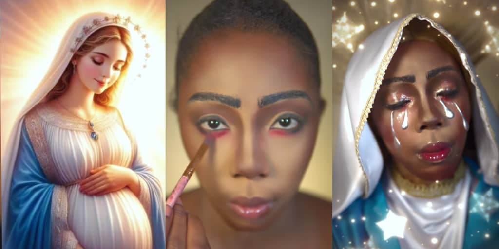 A Nigerian artist has sparked a social media frenzy after attempting to transform her face into that of the Holy Mary using makeup.