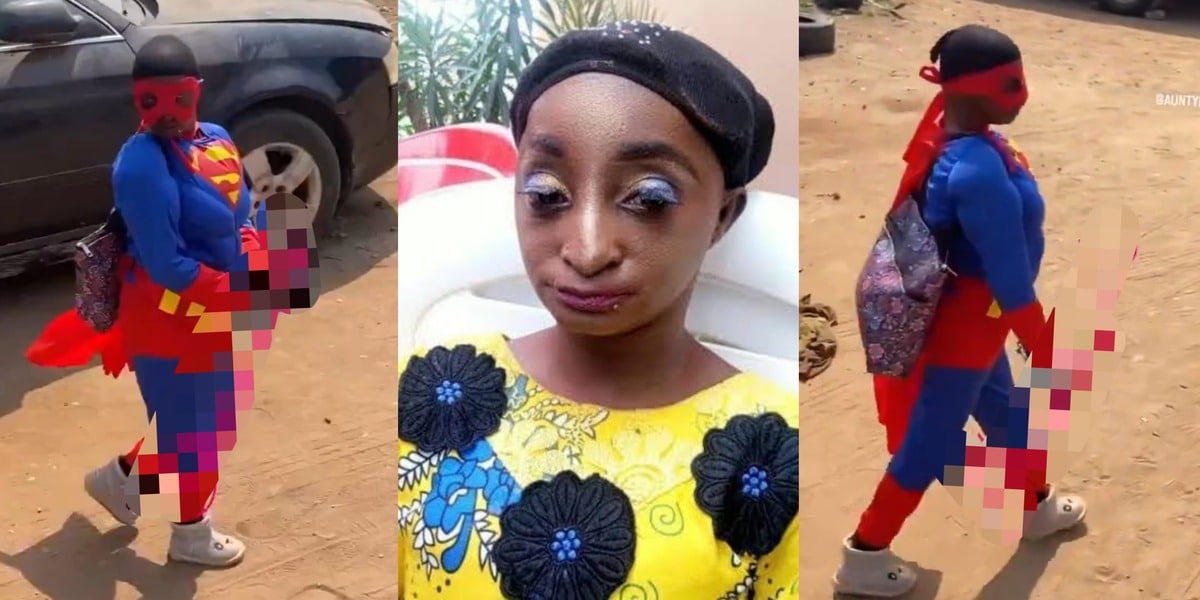 In the video, the Nollywood actress is seen moving around the street in her Superman costume.