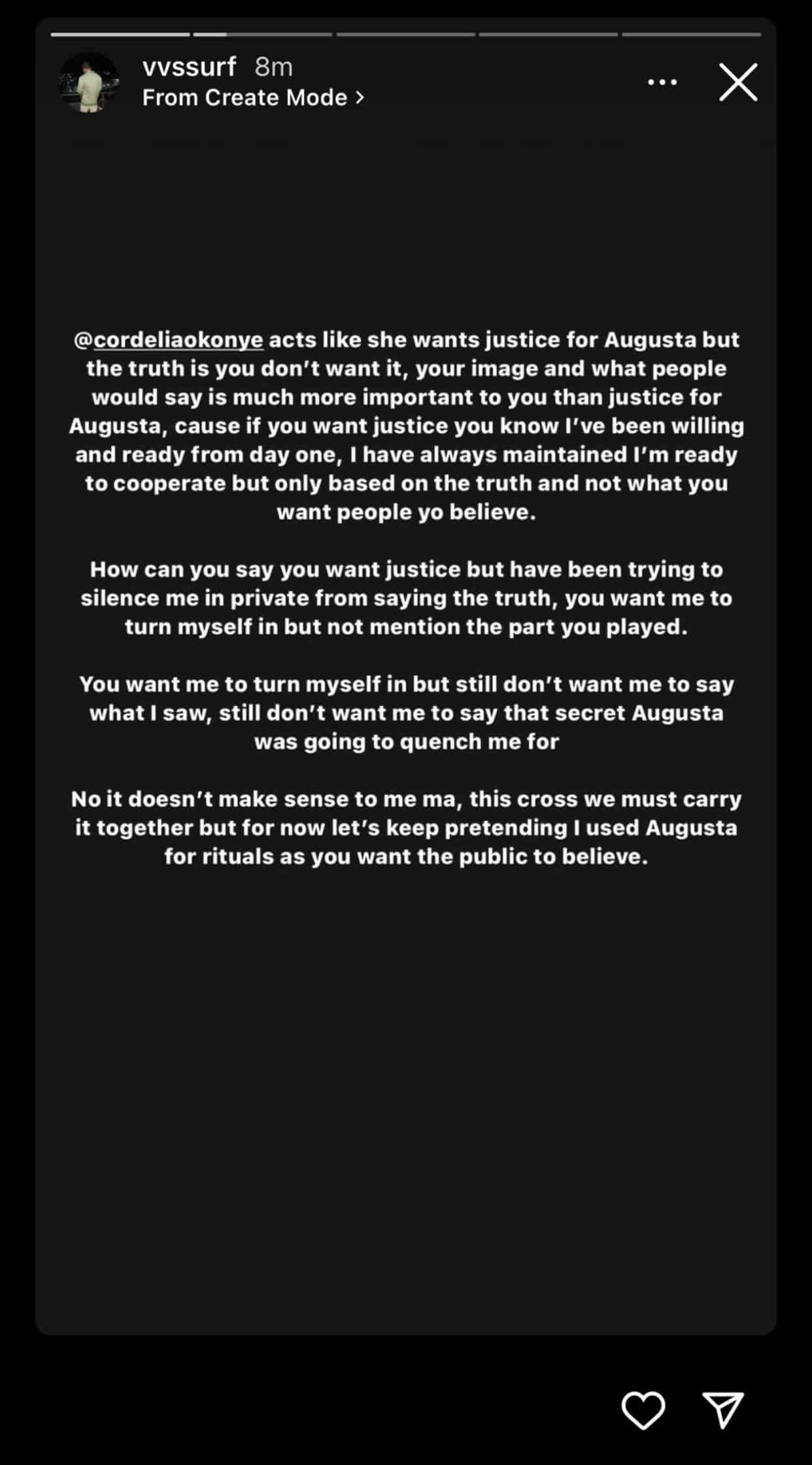 In response to Austa’s mother’s demand for justice, Killaboi has taken to his Instagram story to accuse the mother of being complicit in her murder.