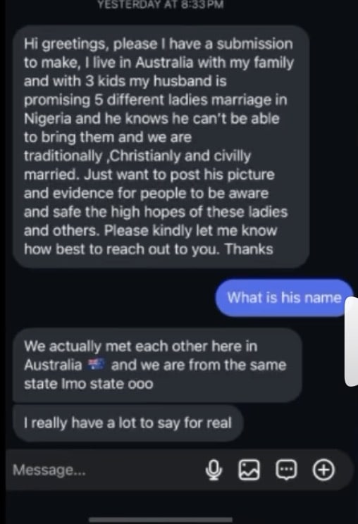 She appealed to Verydarkman for guidance on how best to proceed, seeking to raise awareness and protect other women from false hopes. The woman emphasized that both her husband hail from Imo State, Nigeria, and initially met in Australia.