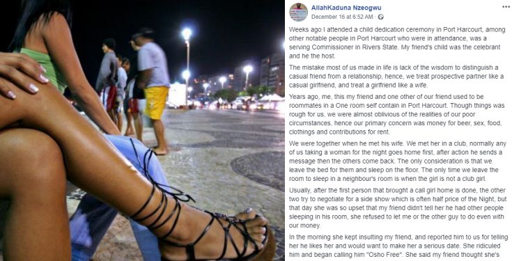 Nigerian man narrates how a prostitute changed his life and that of his friends