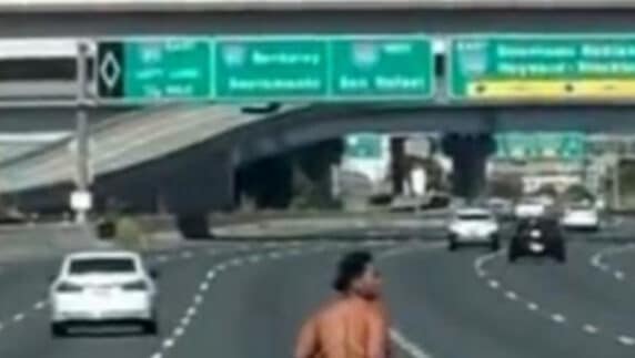 Naked woman gets out of her car, then fires gun on busy bridge during rush hour (Video)