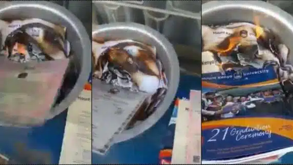 Man burns certificates over inability to find job two years after graduation (Video)