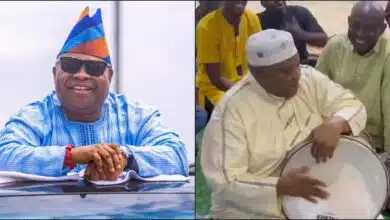 “He’s such a happy person” — Governor Adeleke praised as he shows off drumming skills (Video)