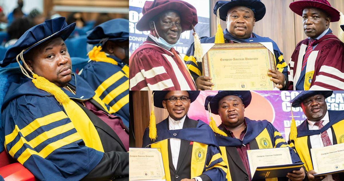 “Na mumu dey do thesis for 4 years” – Reactions as Cubana Chief Priest bags doctorate degree