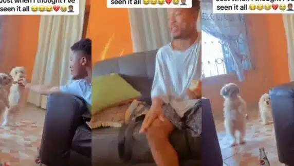 Man makes his dogs clap and dance before feeding them (video)