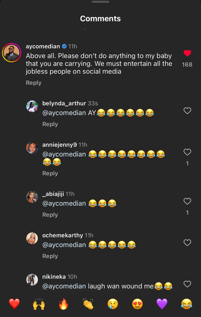 Comedian AY Makun has finally reacted to rumors spread online that he is expecting a child with reality star, Alex Unusual.