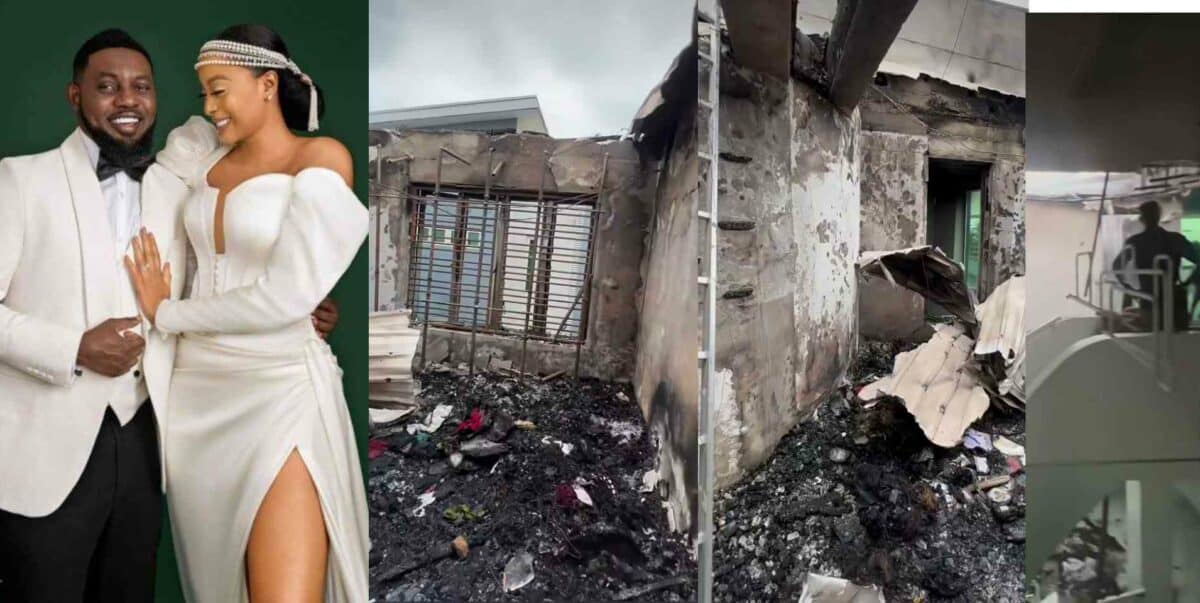 Following the reports, a video shared by AY Makun’s sister-in-law has given an inside view of the aftermath of the fire accident.