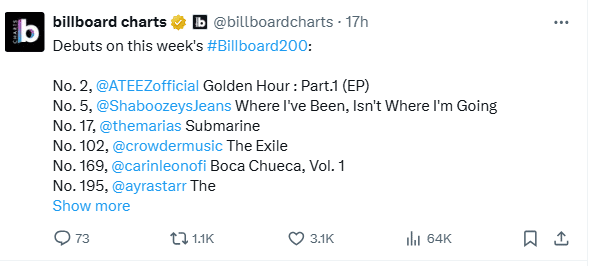“Debuts on this week’s #Billboard200: