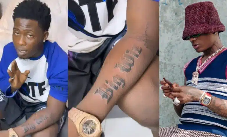 “Baba 20 meter don finish” – Speculations as GOE tattoos Wizkid’s name on his arm