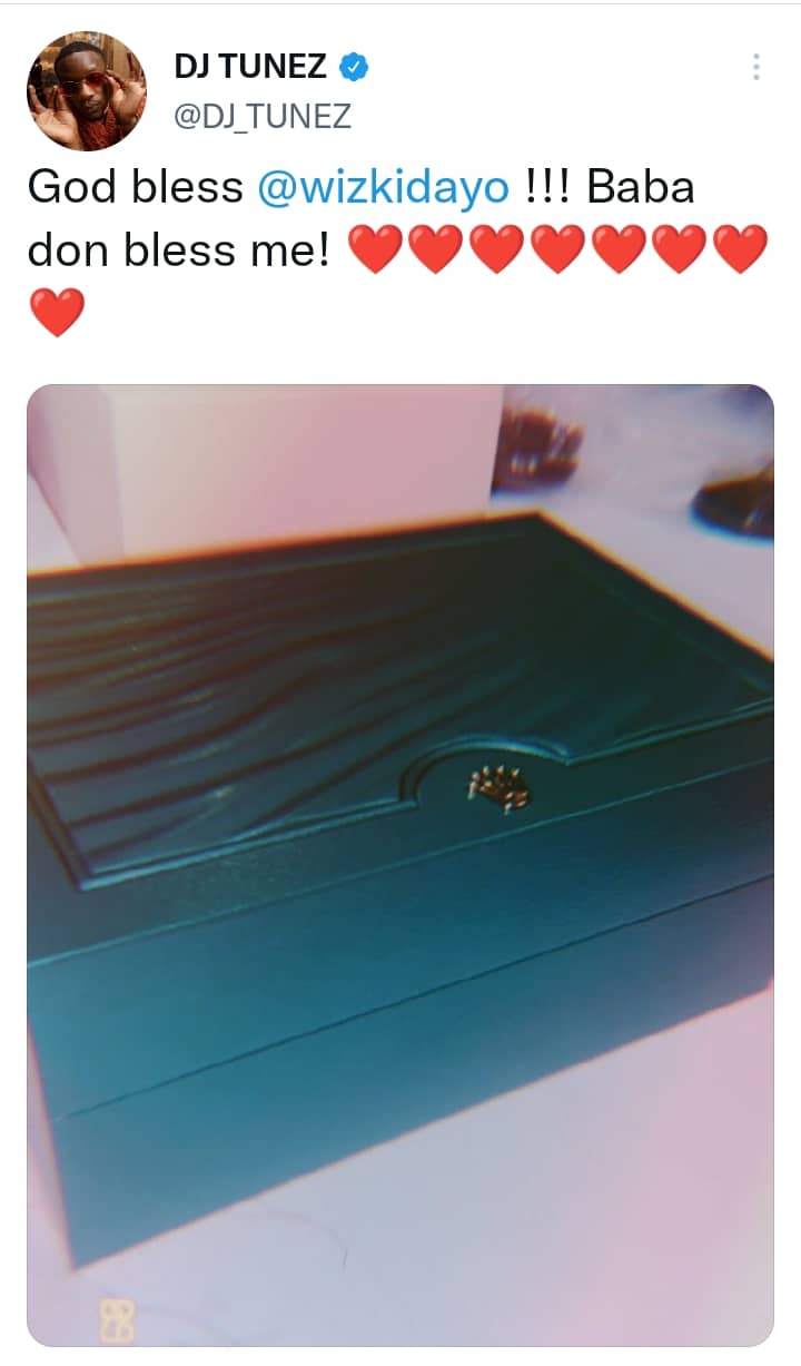 “Baba don bless me” – DJ Tunez excited as he receives new Rolex watch from Wizkid