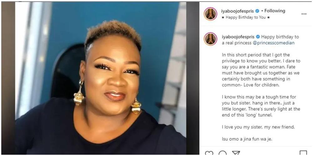 Iyabo Ojo wrote: Happy birthday to a real princess @princesscomedian