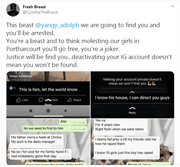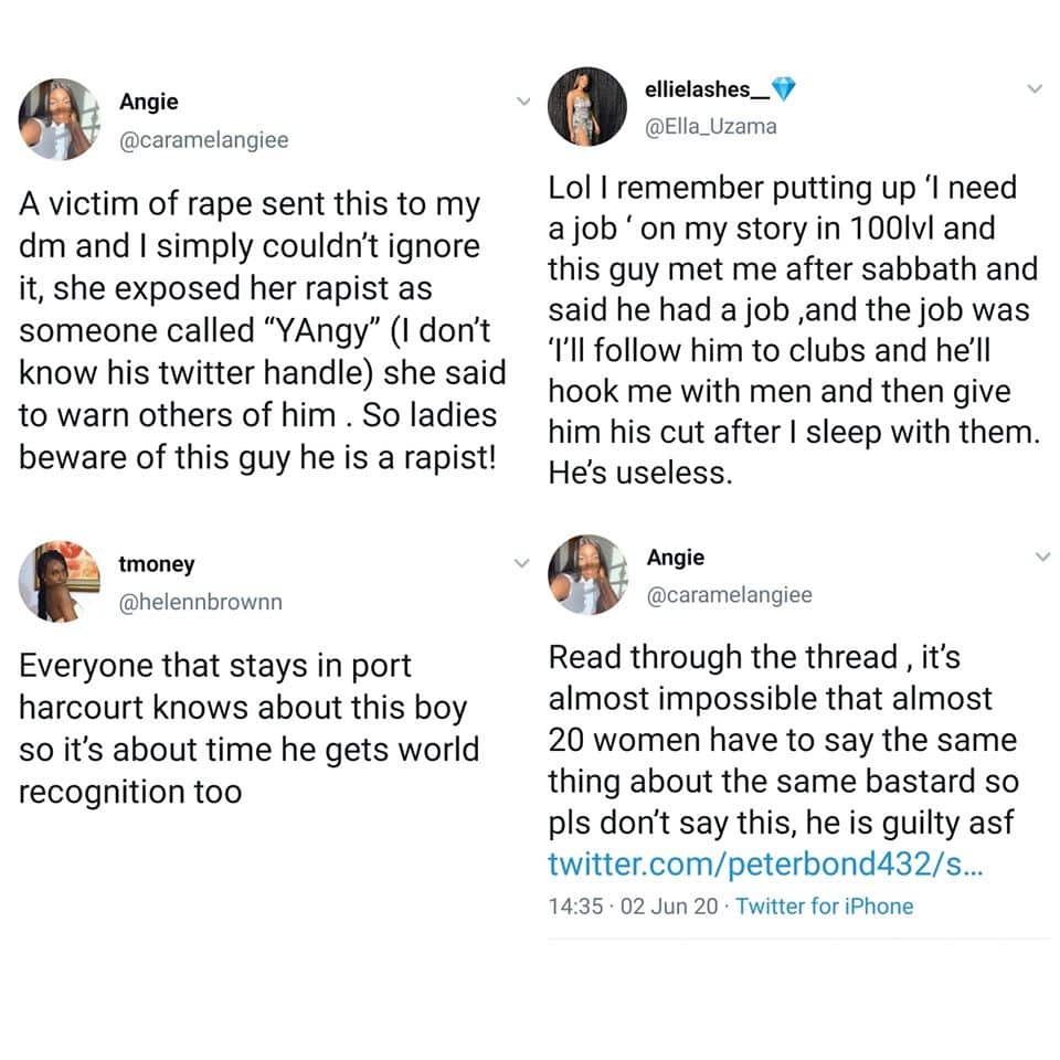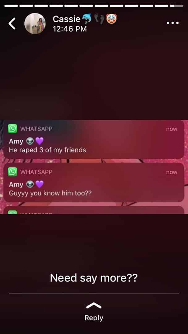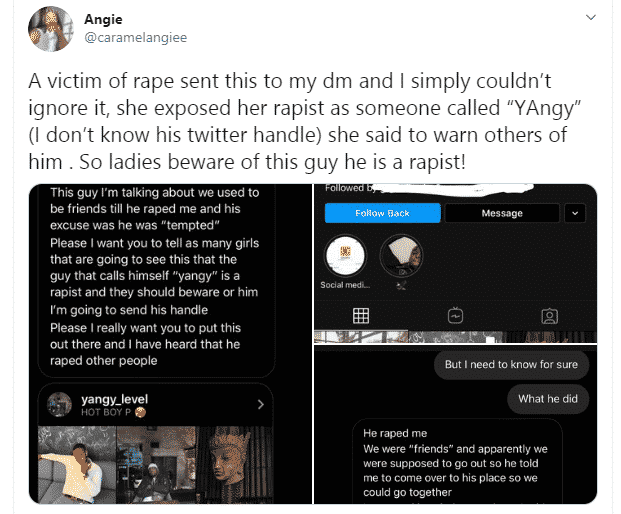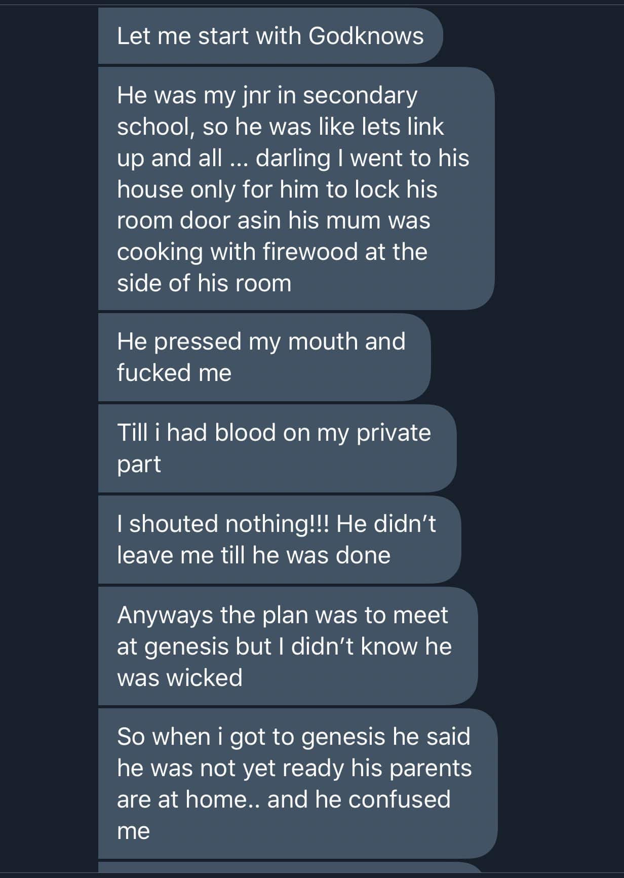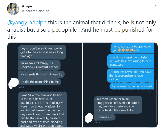 It all began after a Twitter user @caramelangiee shared screenshots of a DM she got from a lady who accused him of rape. This prompted the student’s alleged victims to come forward with their story