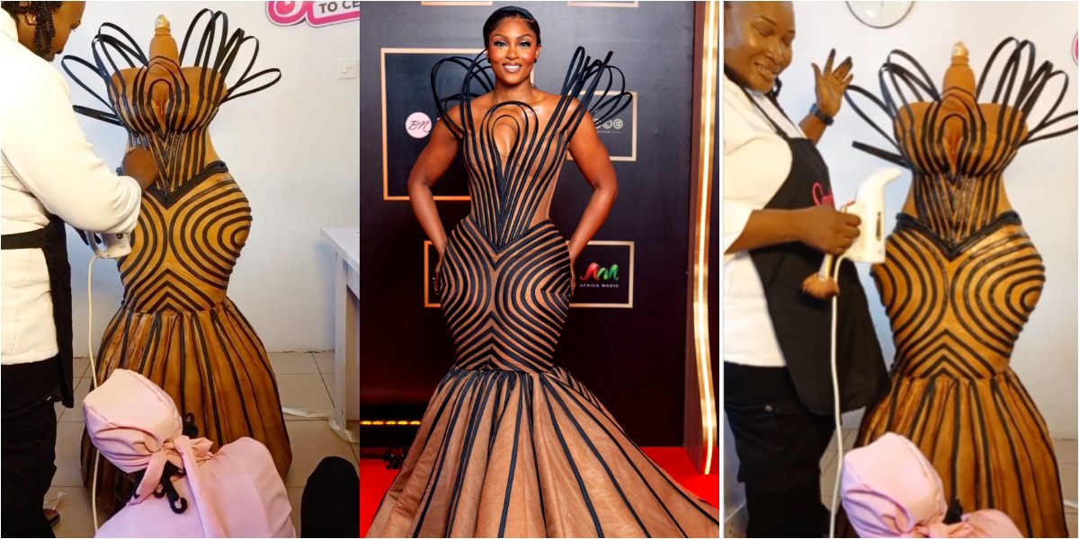 Baker bakes huge cake inspired by Osas Ighodaro AMVCA outfit, netizens gush