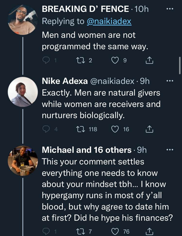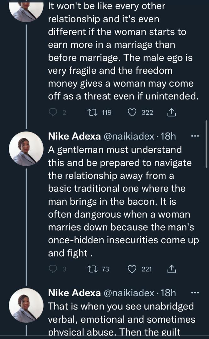 According to a Twitter user identified as @naikaidex narrated that the warnings received before settling for marriage with a man who earns lesser than she does finally came to life.