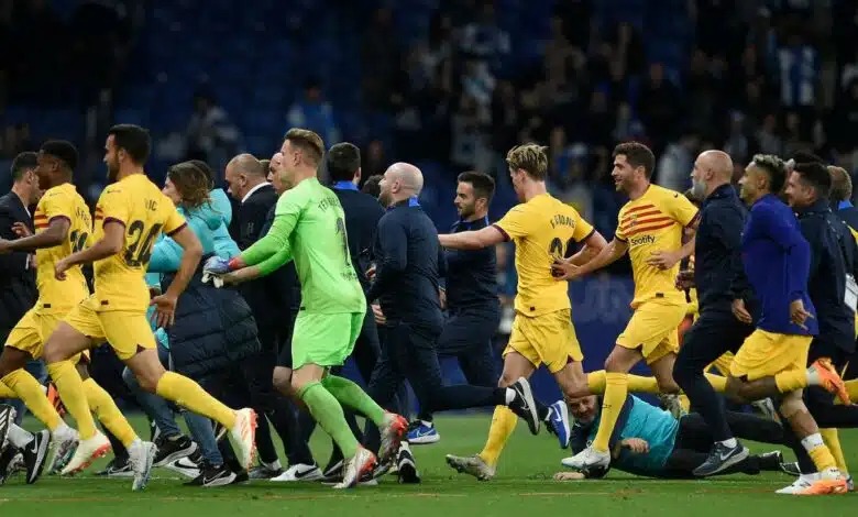 Celebrations on the field were short-lived Sunday as players had to rush to the locker room after a large group of Espanyol fans from the ultra section behind one of the goals started running toward Barcelona players singing and celebrating in the center. Security guards quickly intervened but riot police had to stand in front of the tunnel’s entrance to prevent the fans from going in. The supporters threw chairs and other objects.