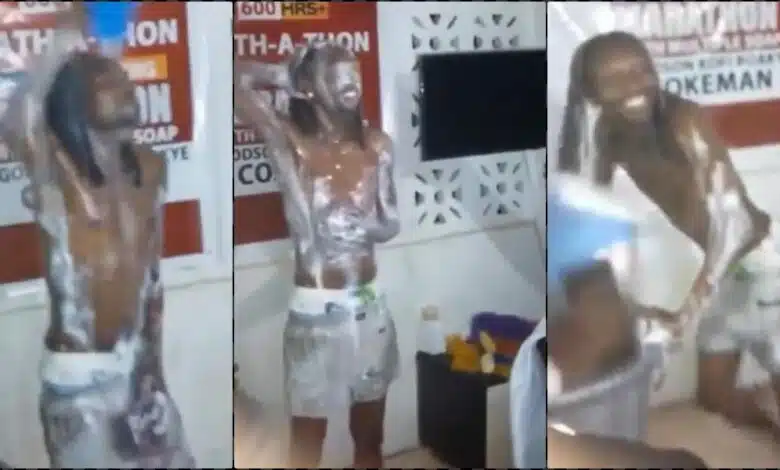A video making the rounds on social media captured a record-breaking attempt by a young man who hope to have a bath for 600 hours nonstop.