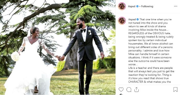 Addressing the issue on Instagram, Mike’s wife, who is a British track and field athlete praised her husband for how he handled the situation, despite the ‘obvious hate and being wrongly treated and rudely spoken too by certain individual housemates.’