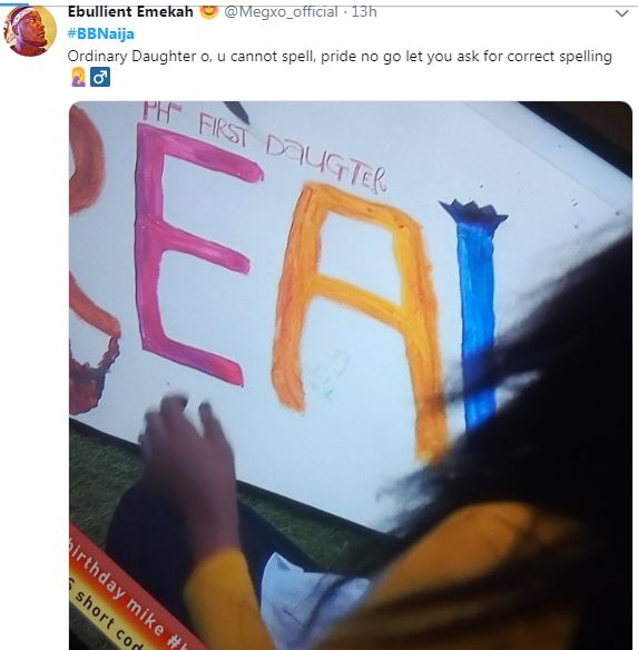 Big Brother Naija’s housemate, Tacha has been dragged on social media, after her inability to spell the word ‘Daughter’ correctly