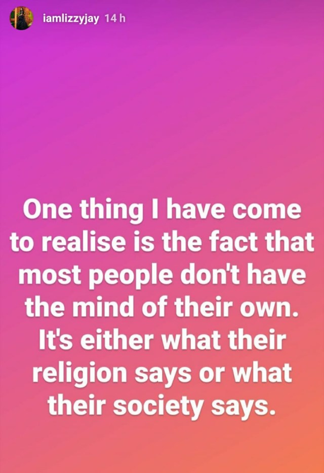 According to Lizzy Jay, the blame should not be one-sided; the woman alone should not have to suffer the consequences of her actions with a man when it’s a joint activity.