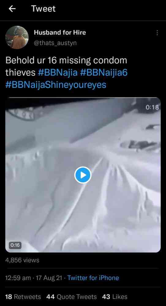 Recall that Nini had told the housemates that packs of condoms are missing. According to her, the condoms were 34 but now 18.