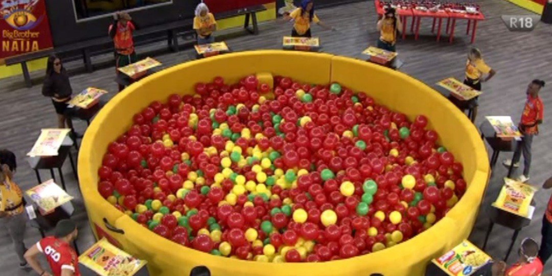 The Housemates gathered around the Arena for part one of their Task, the Ingredient Hunt. The team were given markers which they were to use to tick five ingredients that they would use to make the most delicious noodles. The Housemates were to climb into the big pot in front of them, full of balloons and find the ingredients they wanted to use. They founded what they could and were told they could get their personal pots with their special ingredients. They did this and were told to await further instructions.