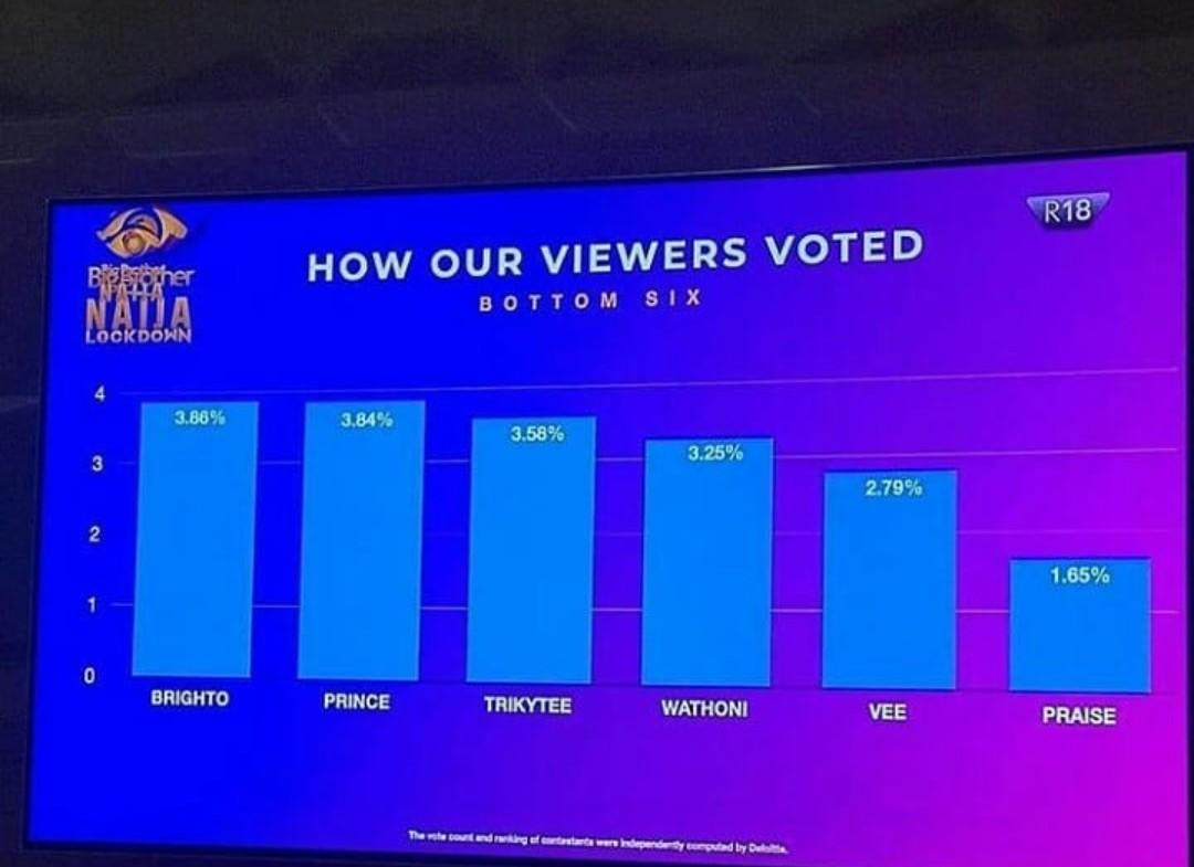 Following Praise’s eviction from BBNaija 2020 ‘Lockdown’ house, details of how Nigerians voted for the live eviction have emerged.