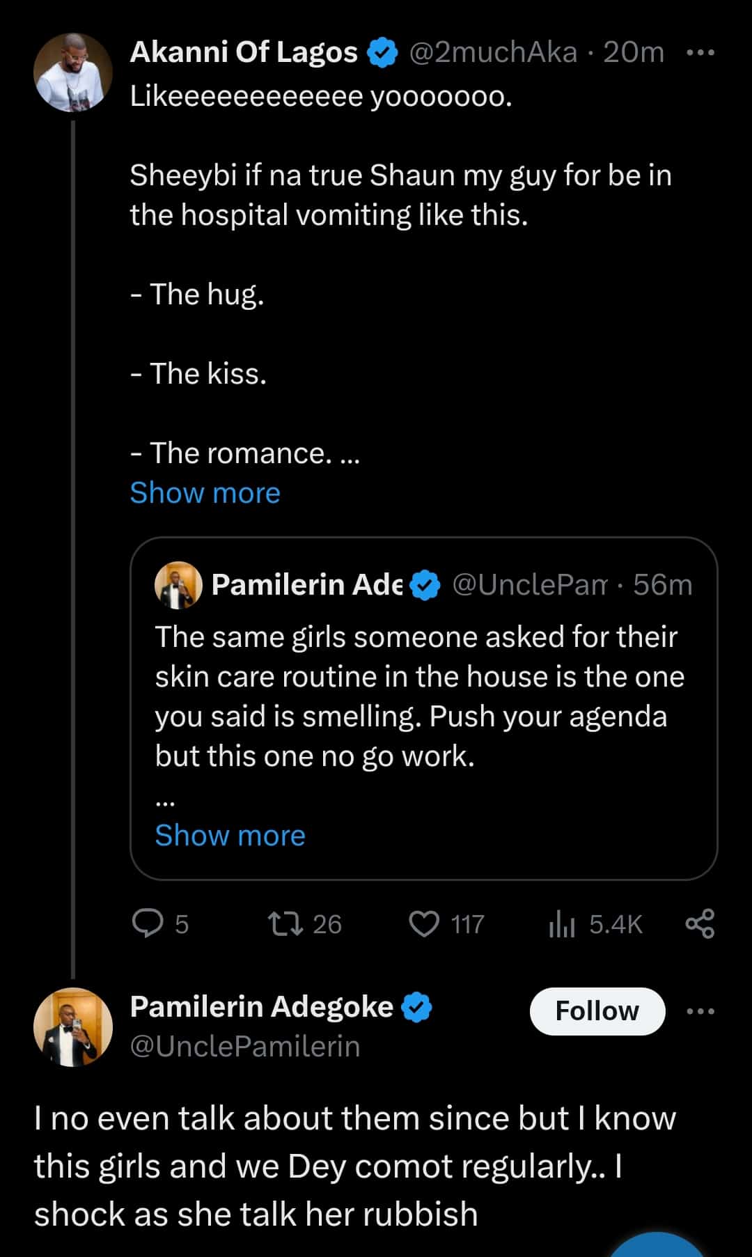 Uncle Pamilerin, a Twitter influencer, shocked many by shutting down claims made by evicted BBNaija housemate, Ruthee that Wanni X Handi has body odor.
