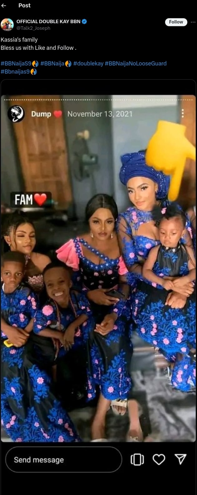 BBNaija: Kassia’s family portrait melts hearts on social media