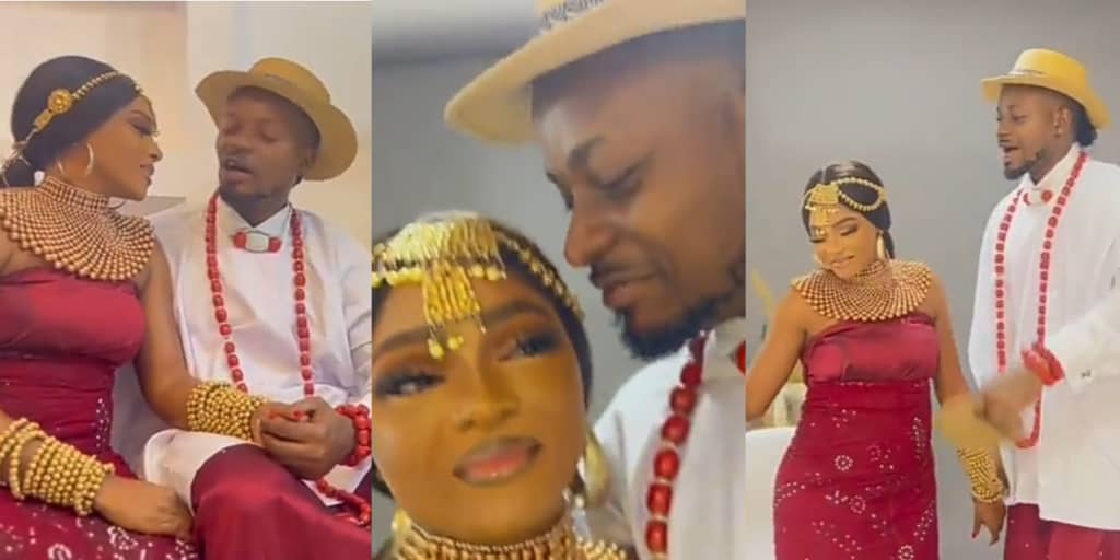 In the video, which was taken at a photo studio, Kellyrae and his fiancée, Kassia, wore beautiful traditional attire. Kellyrae can be heard showering her with praises.