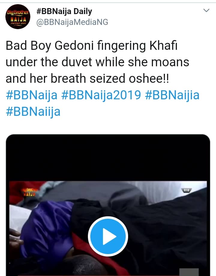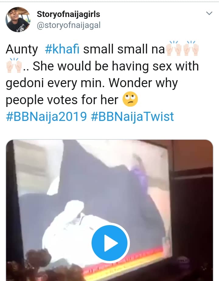 Khafi‘s sexual exploits on BBNaija 2019 is second to none as she has had sex severally with her BBNaija lover, Gedoni.